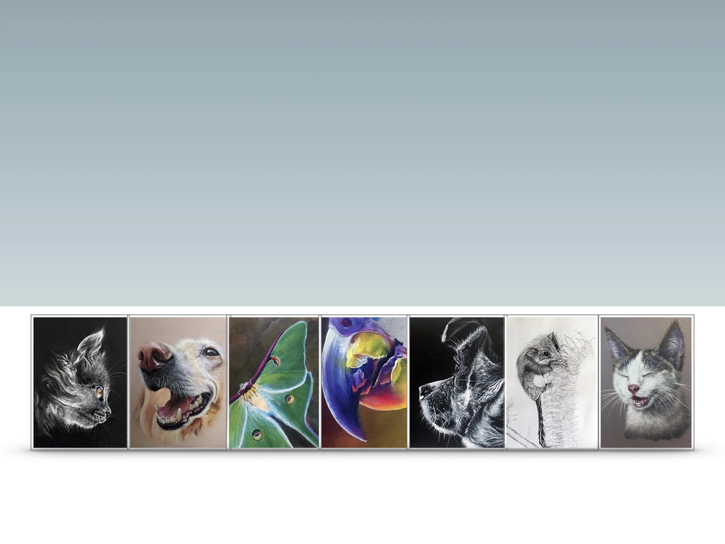 My surfaces vary with subject and medium. I use Pastelmat, Sanded paper from Canson, and, Colourfix, Essdee and Ampersand scratchboard and Fabriano watercolour paper.